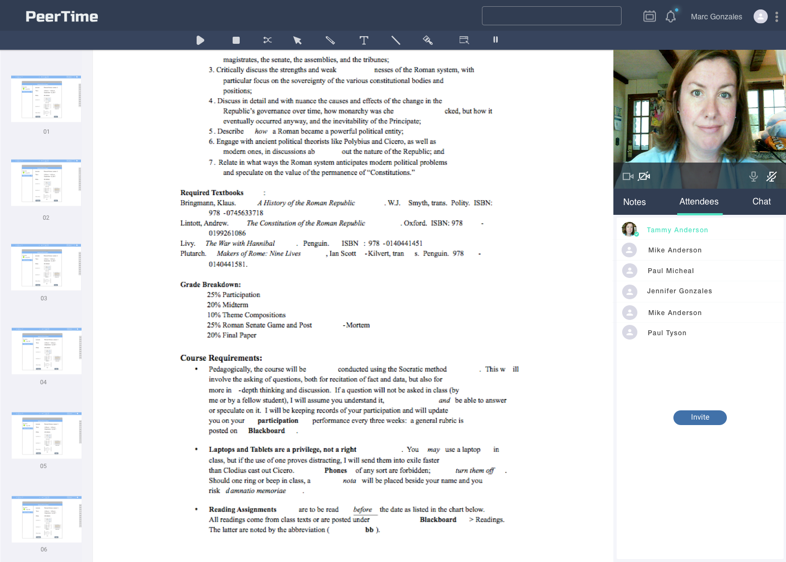This is a Tutors View of Live Classroom, where she can browse the documents through the left side-panel, use whiteboard features under the top Nav-bar and all other administrative issues on the right side-panel.
