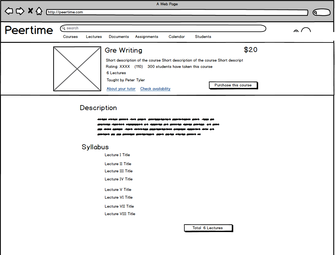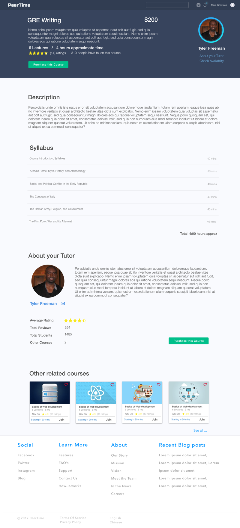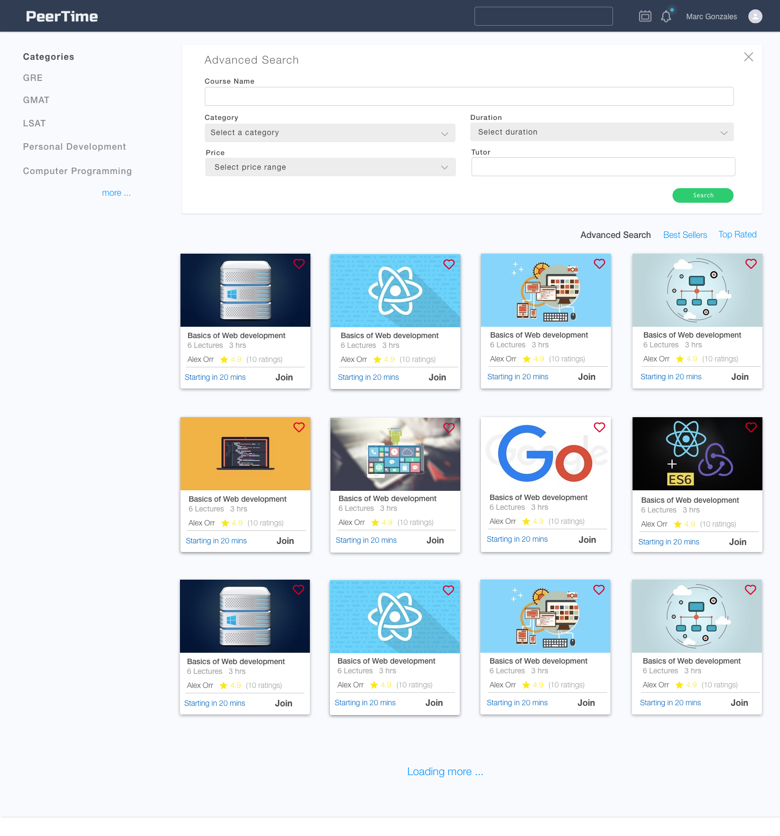 We approached Course listing page differently; instead of showing broad areas of expertise of the tutor, we wanted to allow students search for packaged courses based on their interest. Courses are created by the tutor, in which they give approximate time to cover the subject.