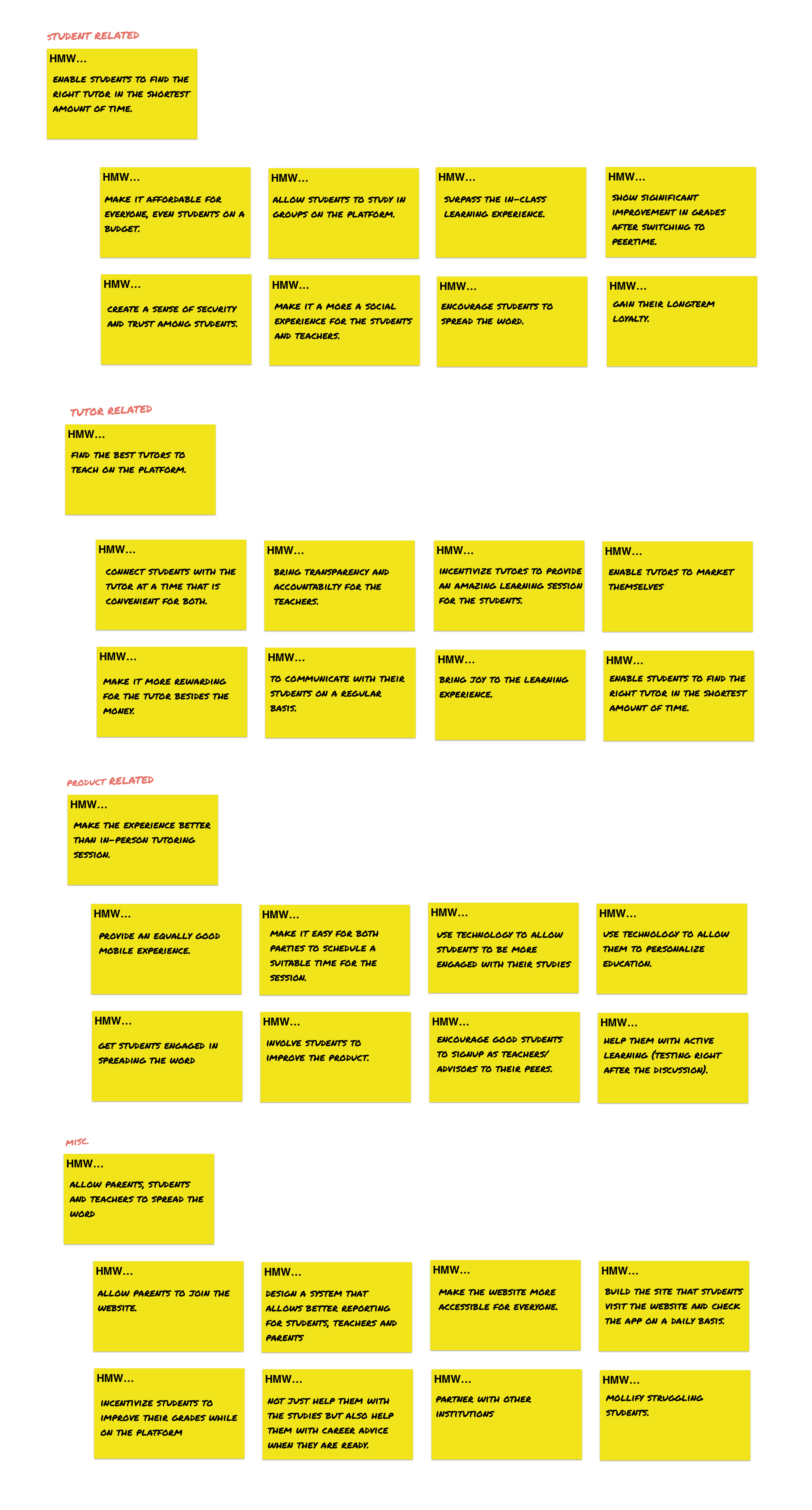 These interviews convinced us that we were targeting the wrong market and should focus on K7-K12 students, potentially connecting them with these college students. We repeated the same process by contacting five high school students through our network. Our office employees brought their kids to work for an hour, where we asked them the same questions.