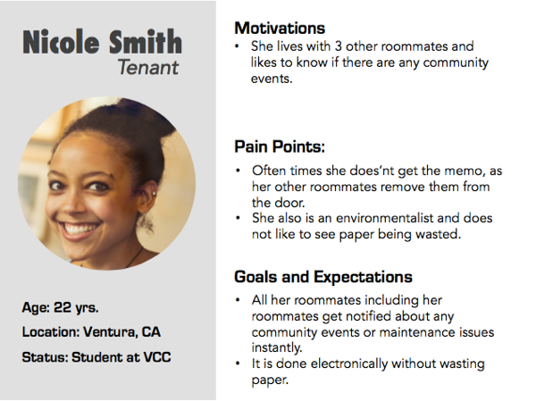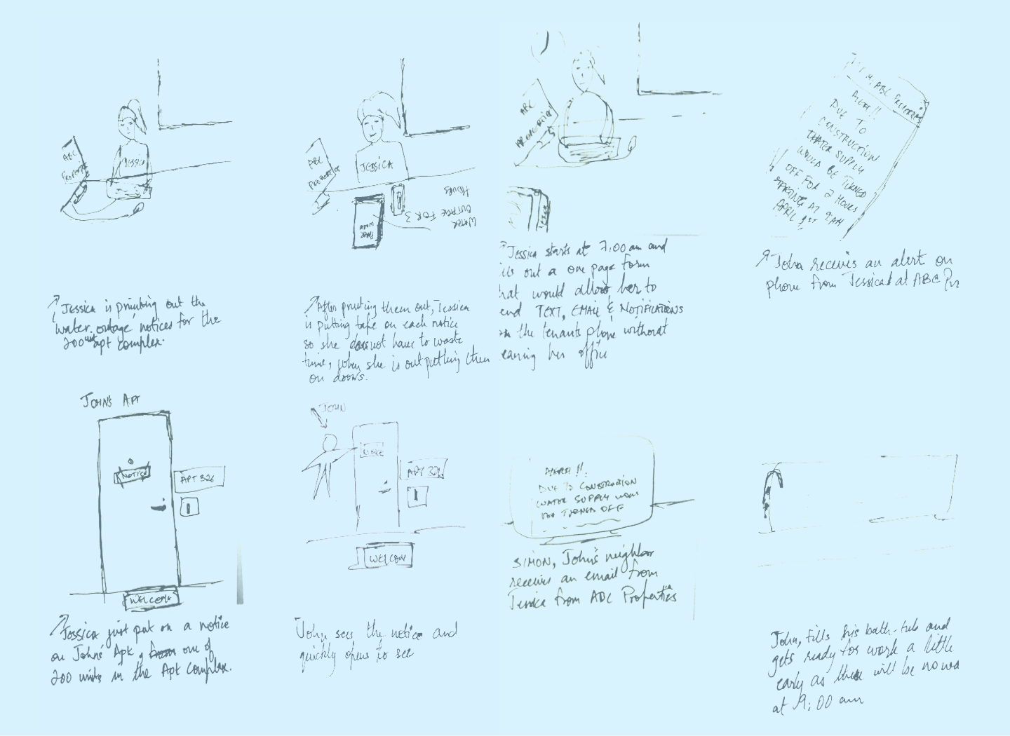 We started off by conducting contextual interviews with my own apartment manager before meeting with a few from surrounding properties. In all, we were able to interview five property managers in Ventura, CA.